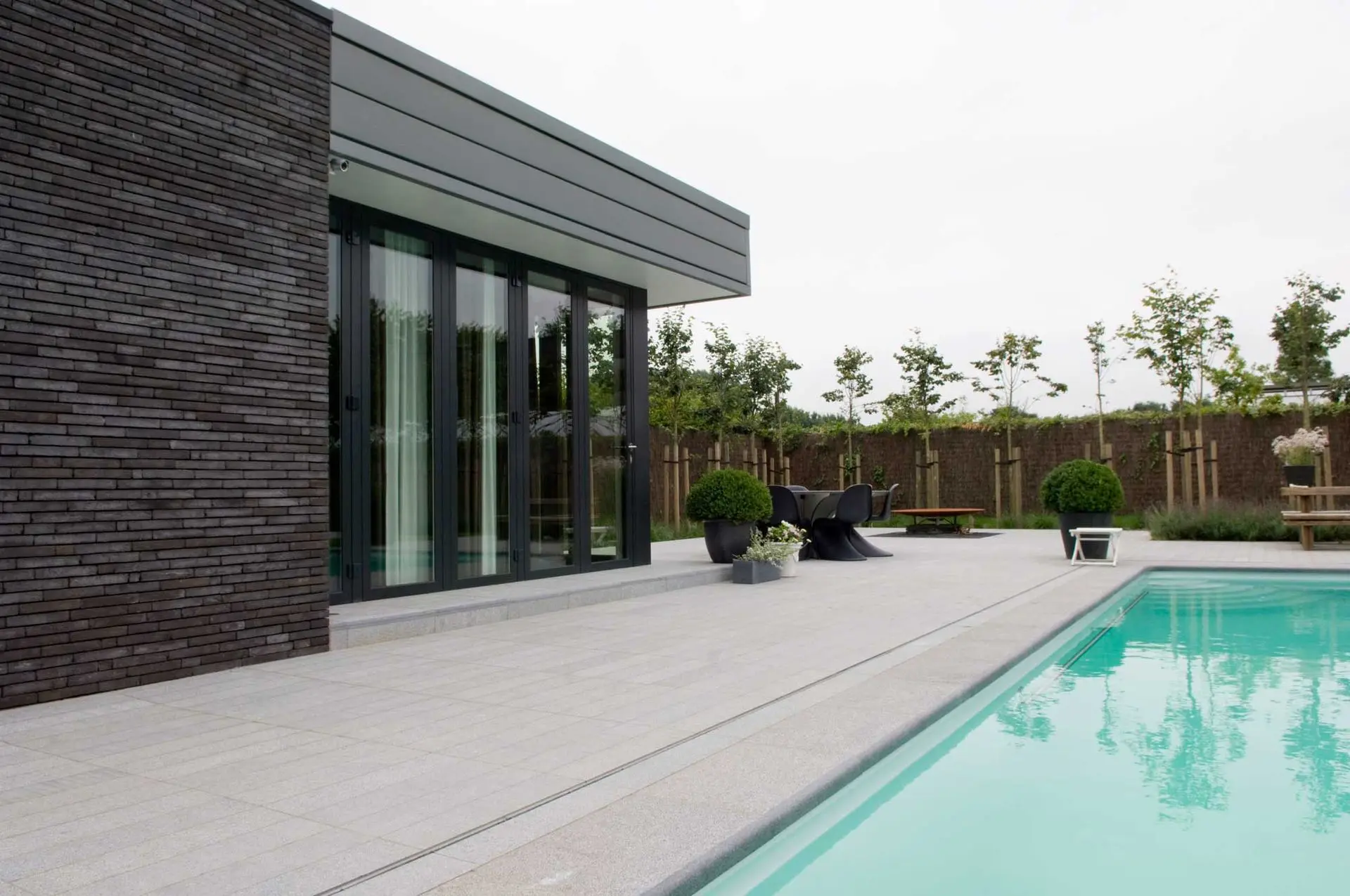 gepolijste afwerking zal men eerder binnenshuis gebruiken. Gebouchardeerd en gevlamd wordt graag op terrassen gebruikt. Bij regenweer of winterweer zorgt de lichte structuur op de natuursteentegels voor een antislip effect. Anderzijds wordt deze steensoort ook gebruikt voor keukenaanrechten en spatwanden in de keuken. Het heeft een opmerkelijk goede weerstand tegen vervuiling en is door zijn hardheid ook weinig poreus. Graniet is te herkennen aan de grijze gespikkelde egale structuur.