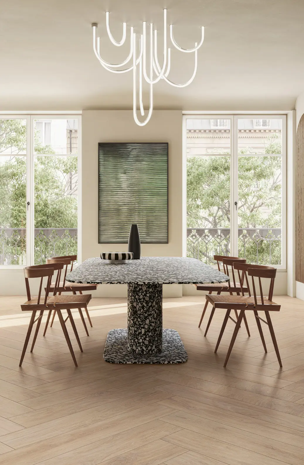 Dit Hongaarse punt legpatroon wordt toegepast in zowel moderne als klassieke interieurs, op vloer of wand. Het geeft de ruimte een dynamische uitstraling en interessante contrasten. Dit chevron legpatroon kan je creëren met alle soorten materialen zoals keramische tegels, natuursteen, zelliges en cementtegels.