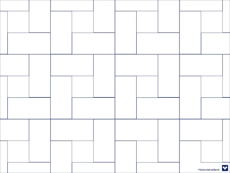 - Molenwiekverband is ideaal voor terrassen en tuinpaden, biedt veel variatie in kleur en formaat; en geeft een speelse, klassieke of jaren 30 uitstraling.