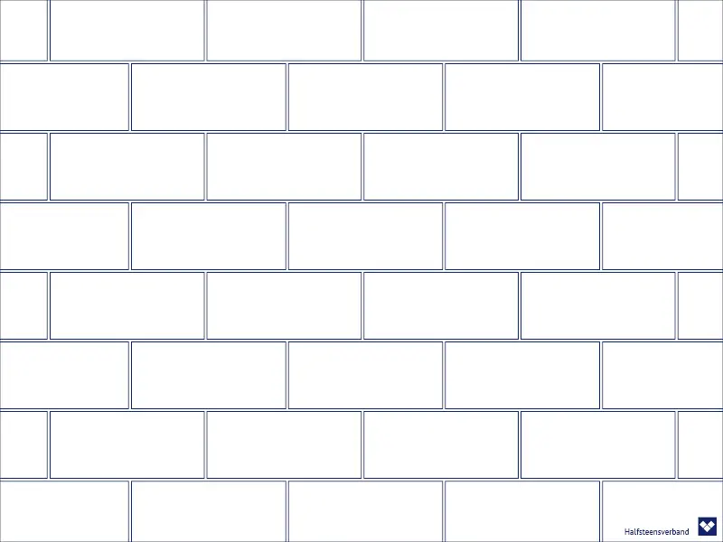 - Het halfsteensverband wordt vaak horizontaal of verticaal toegepast met langwerpige tegels om een levendig effect te creëren met minimaal snijverlies.