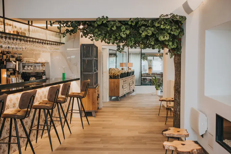 Tenslotte geeft de Marmerlook Delhi de wanden aan de bar een extra luxueus accent.