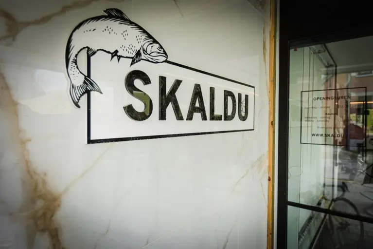 Skaldu is puur genieten van gastronomische visgerechten, waarvoor ze bekend staan, in een gezellige sfeer. Wat ook bijdraagt aan deze warme sfeer is de originele bar, bekleed met bruine patroontegels Madeleine Evora.