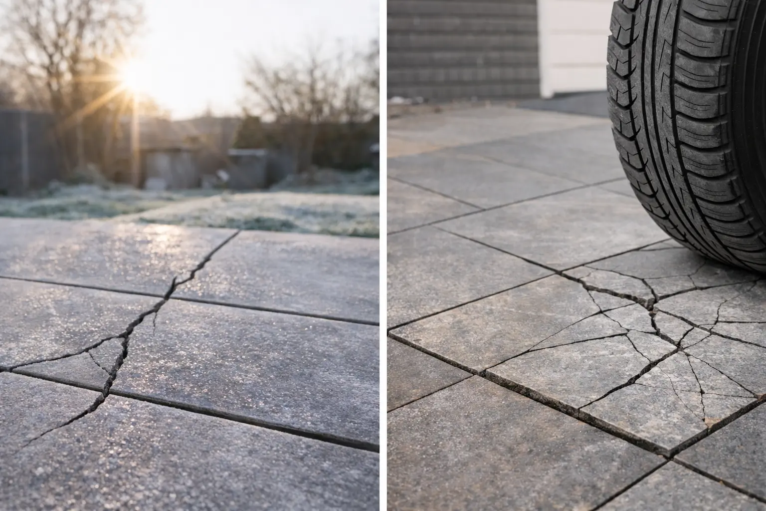 Dunne tegels op een zandbed onder voertuigen? Dat is vragen om problemen.