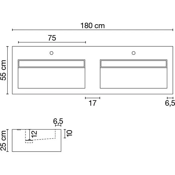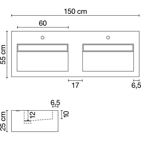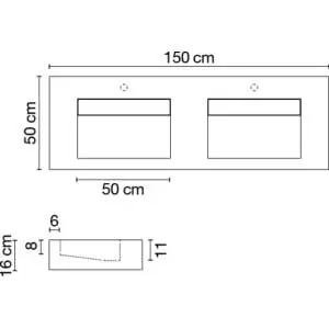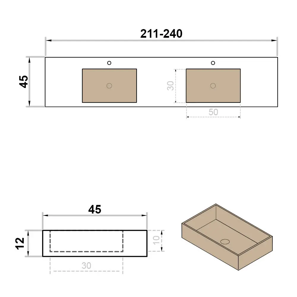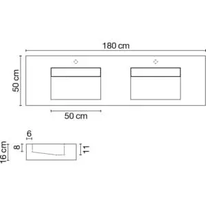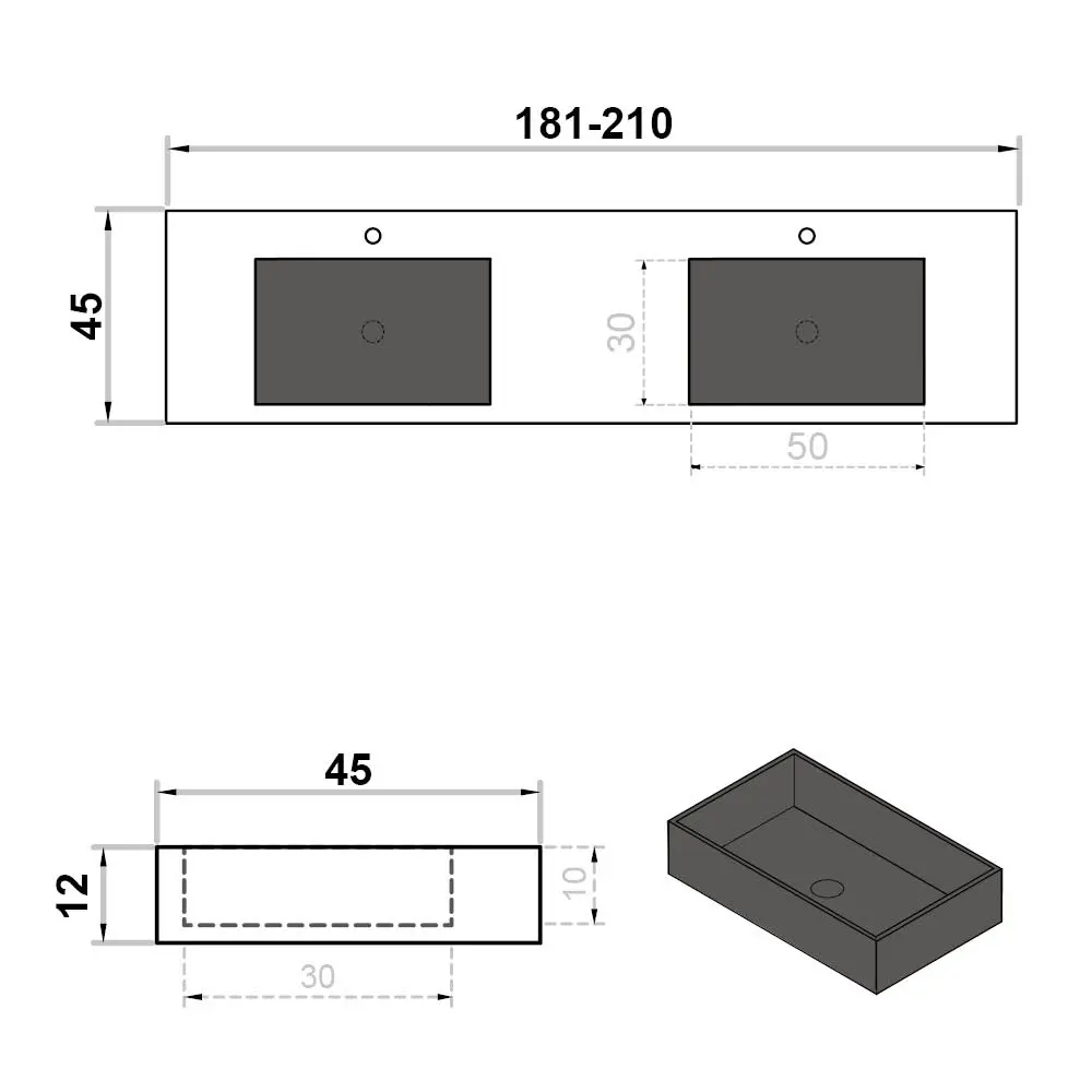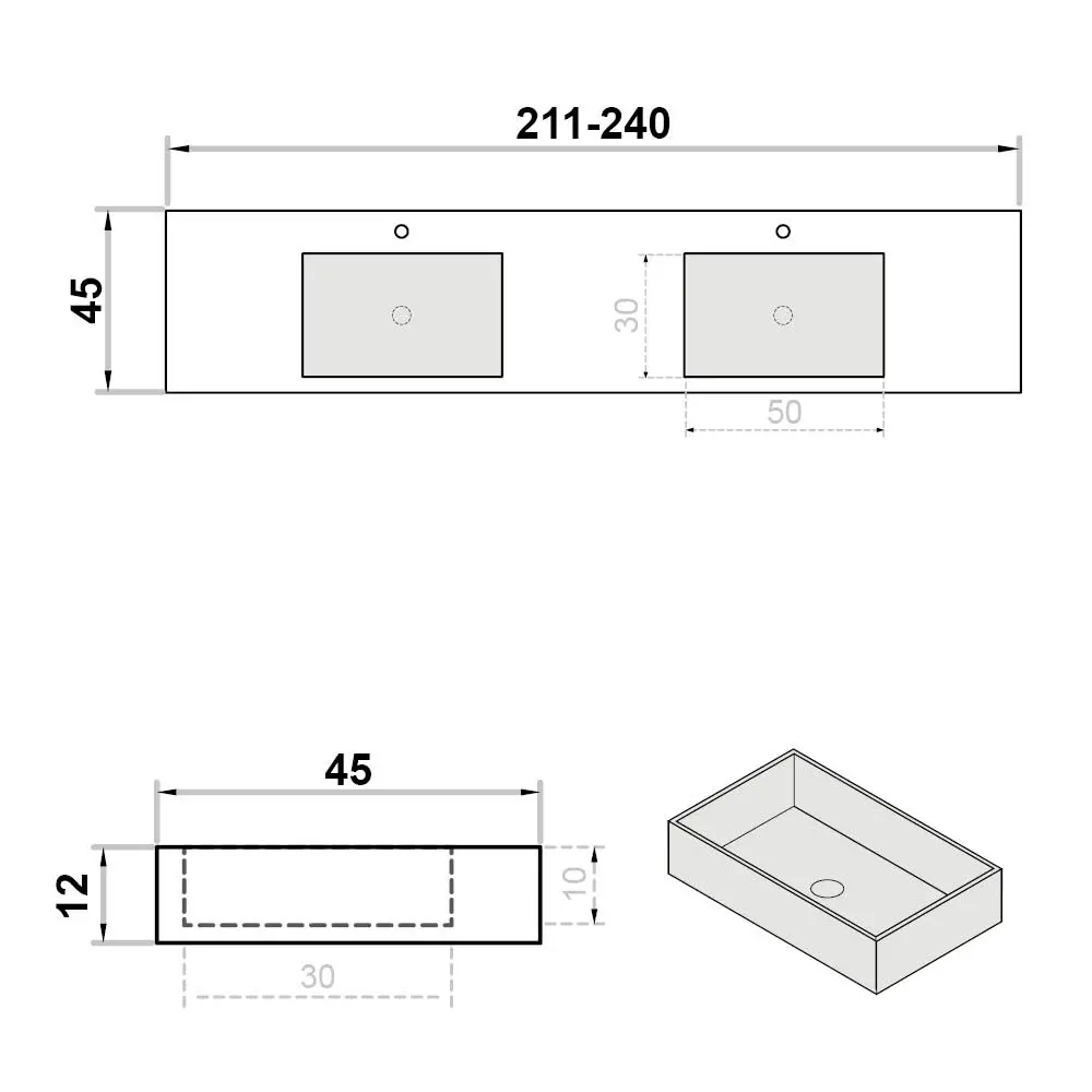 Keramische wastafel met solid surface inbouw lavabo - grey