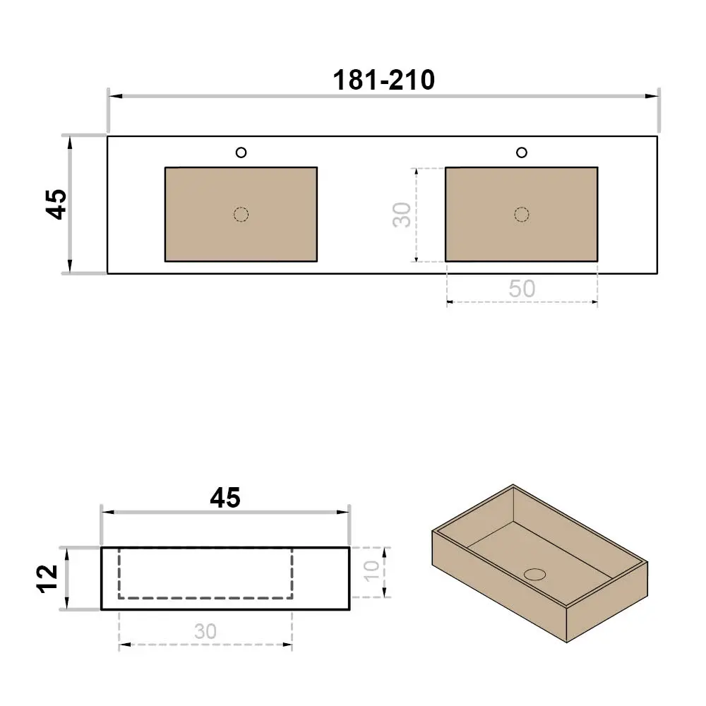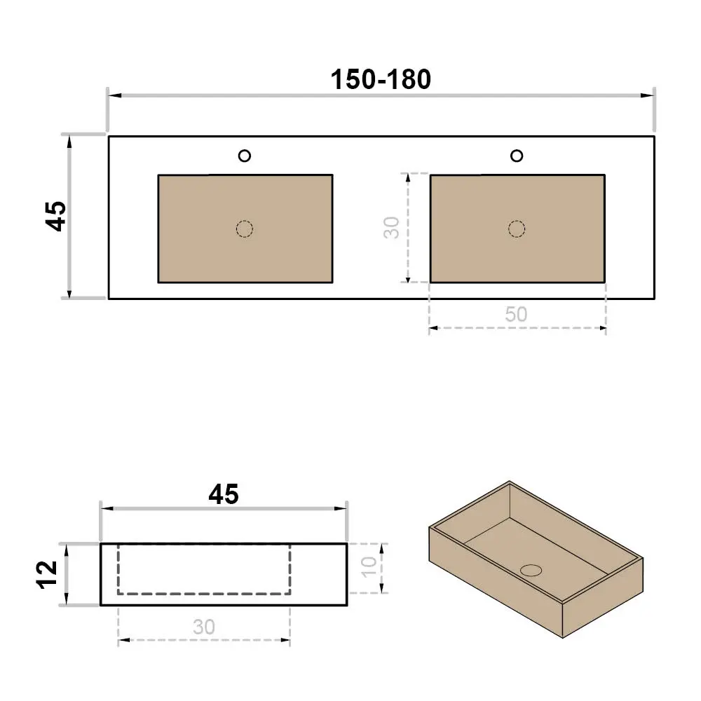 Keramische wastafel met solid surface inbouw lavabo - taupe