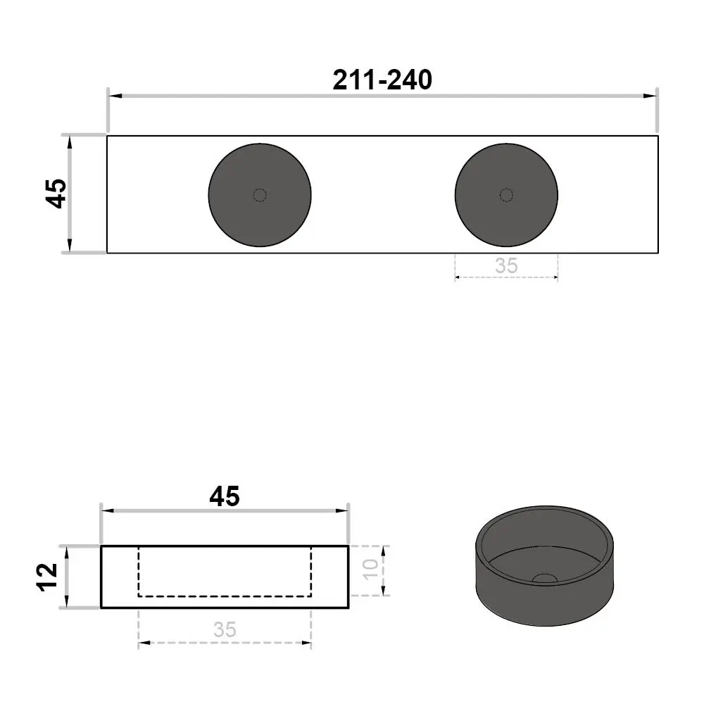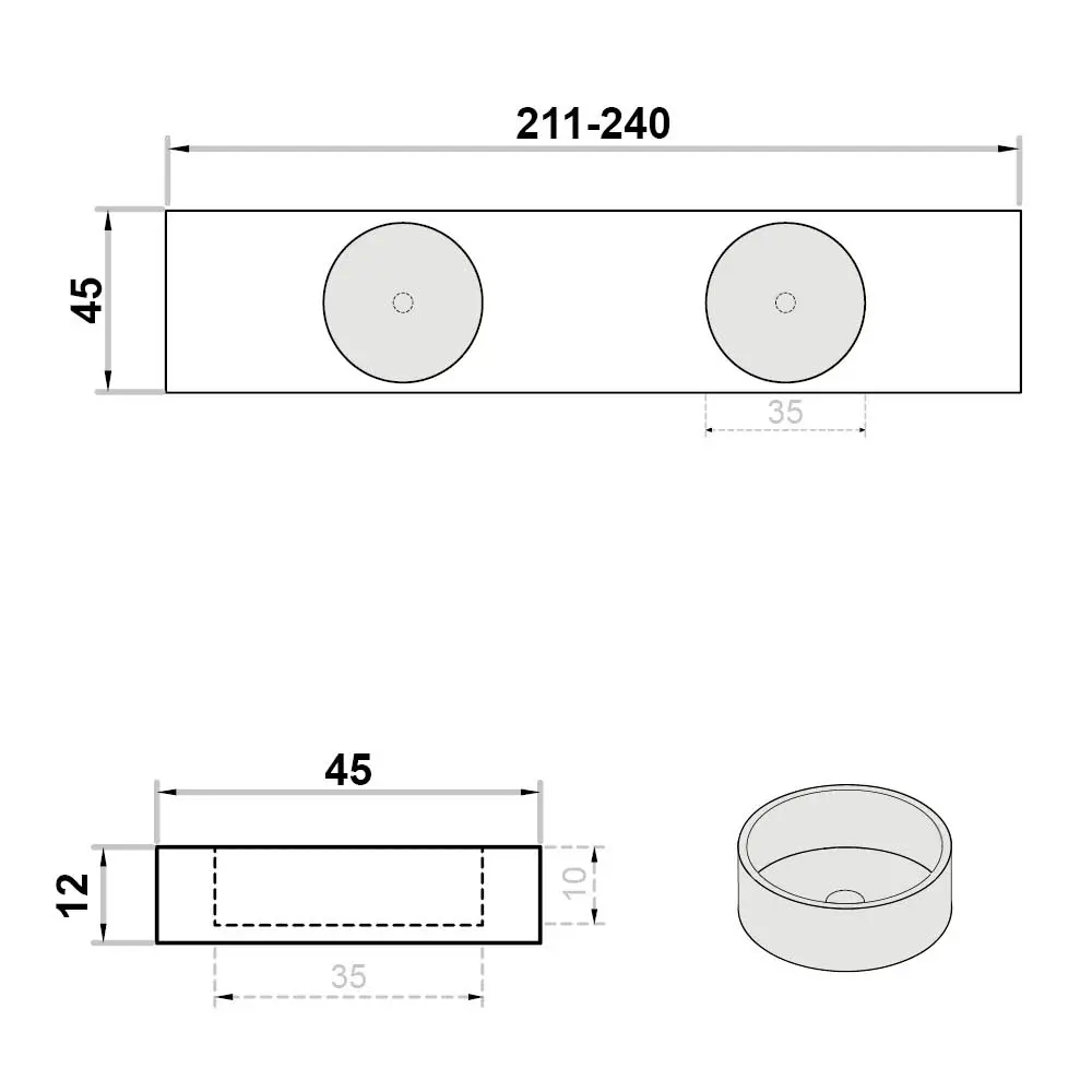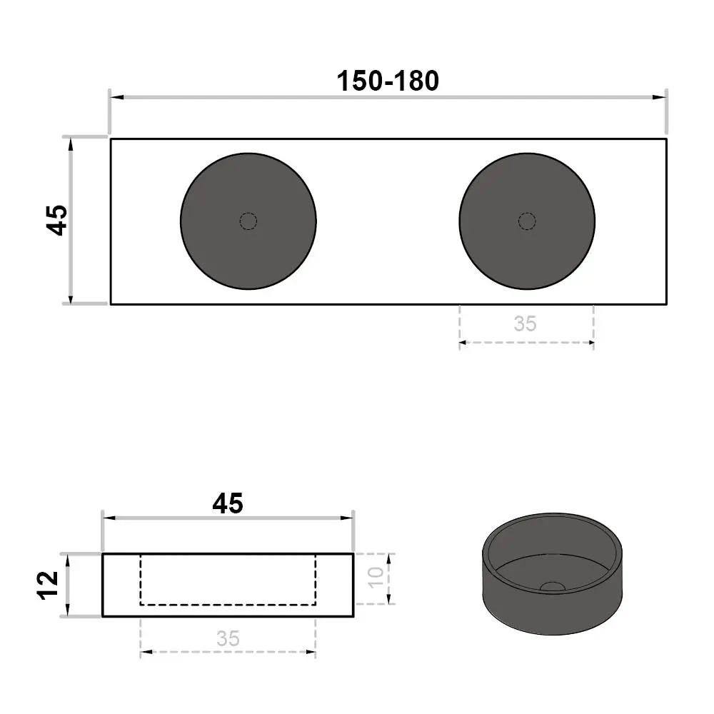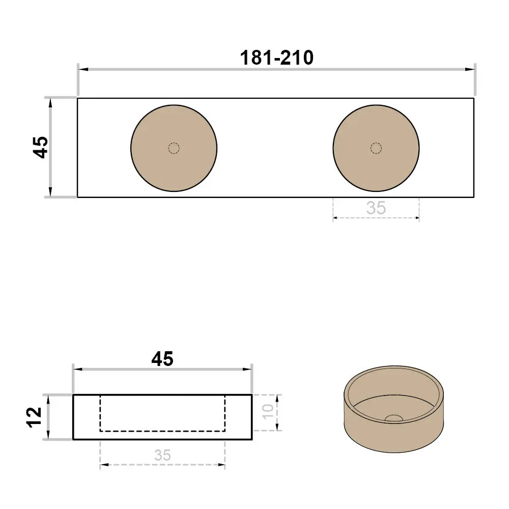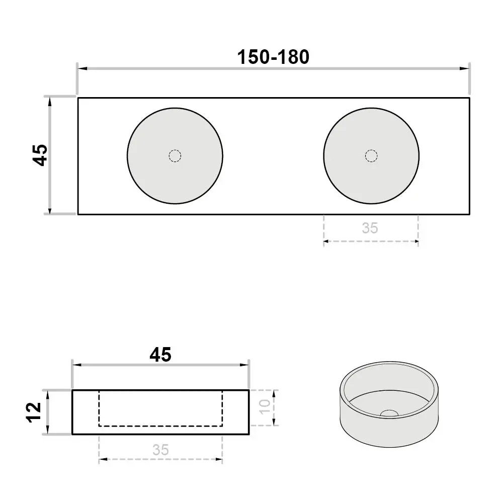 Wastafel op maat dubbel zonder kraangat rond