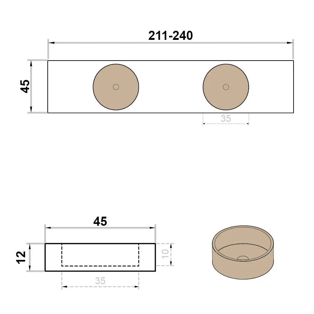 Keramische wastafel met solid surface inbouw lavabo's - taupe