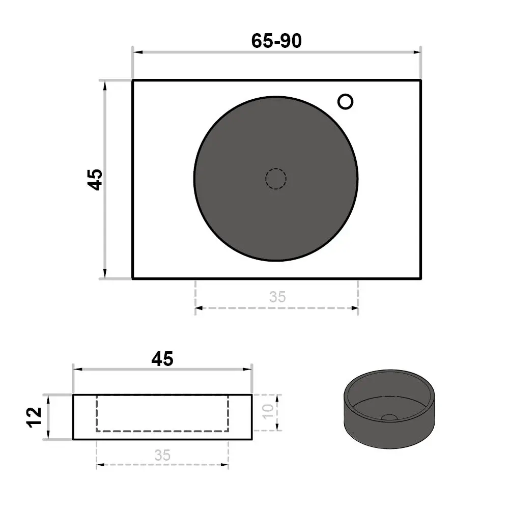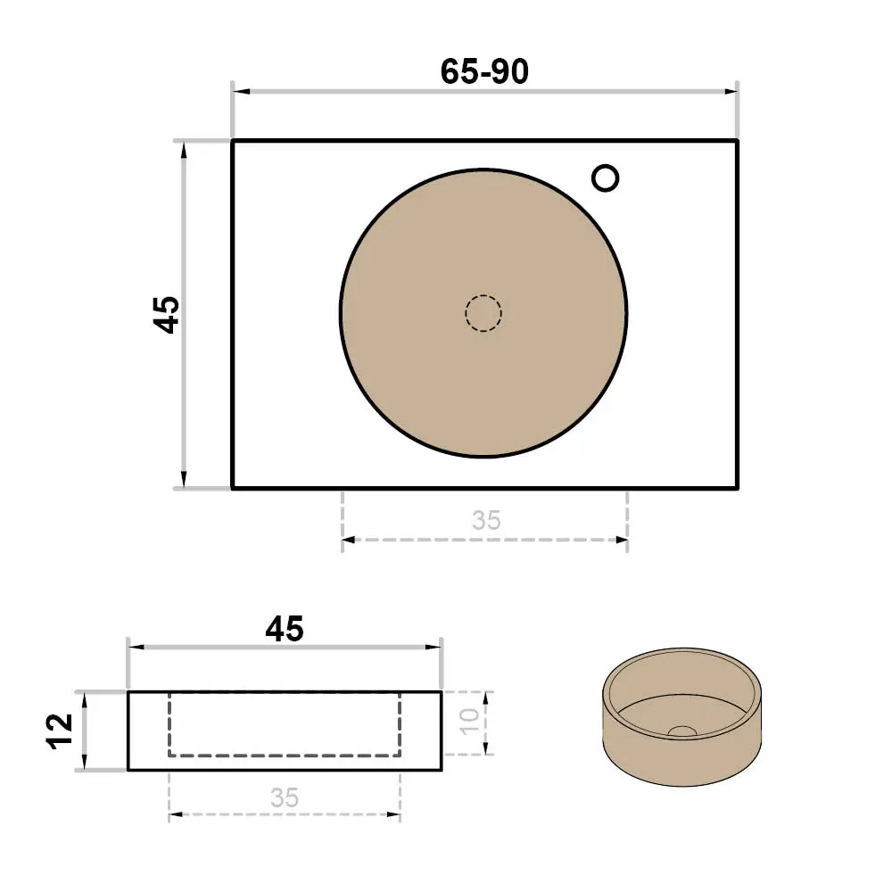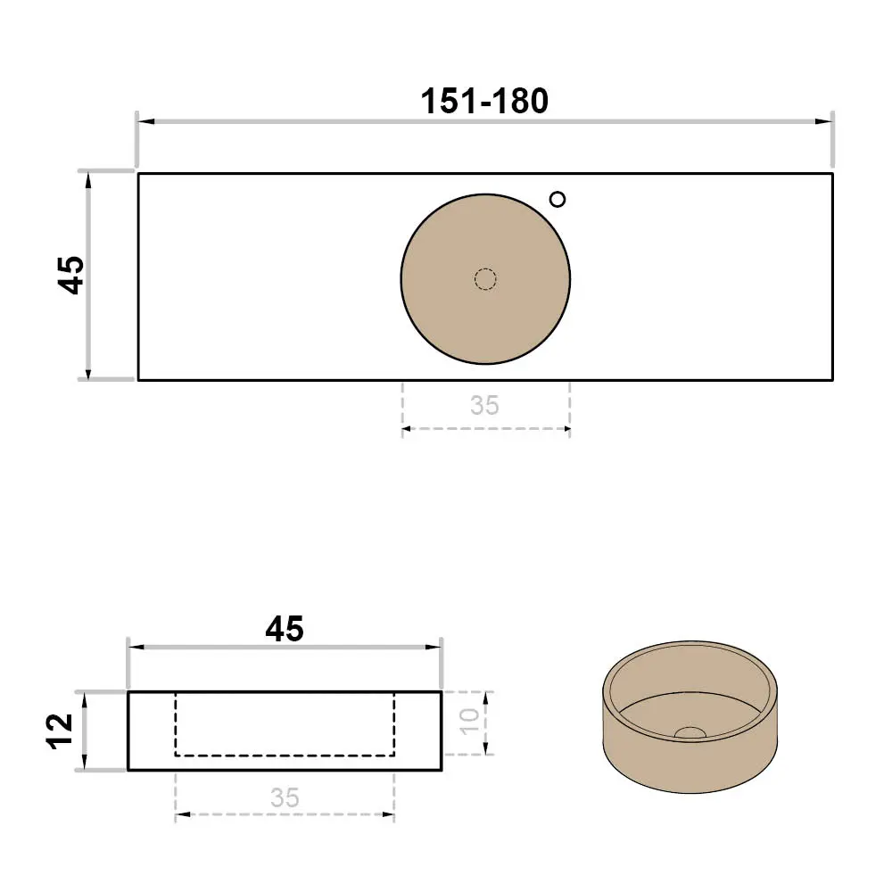 Kies voor een keramische wastafel met rond inbouwlavabo in solid surface in grey, taupe of white:
