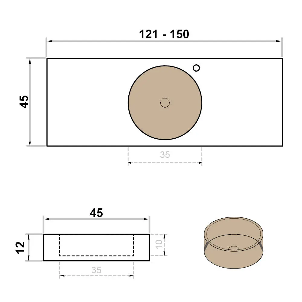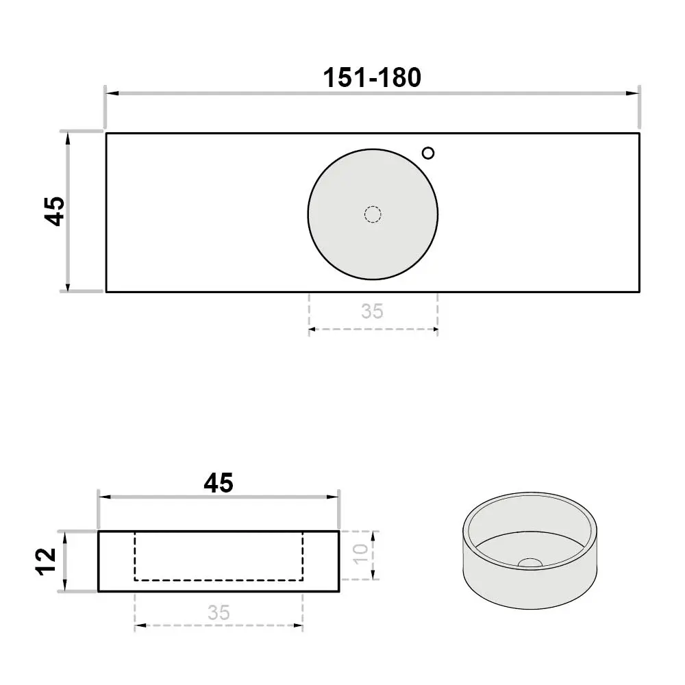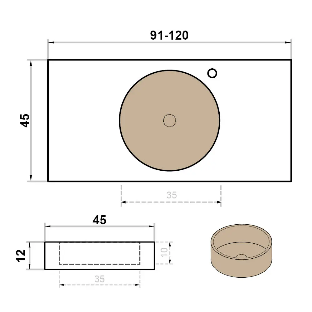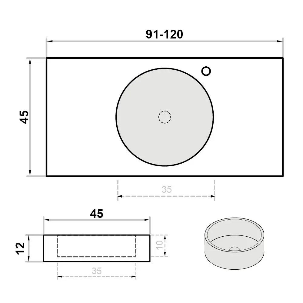 Wastafel op maat enkel met kraangat rond