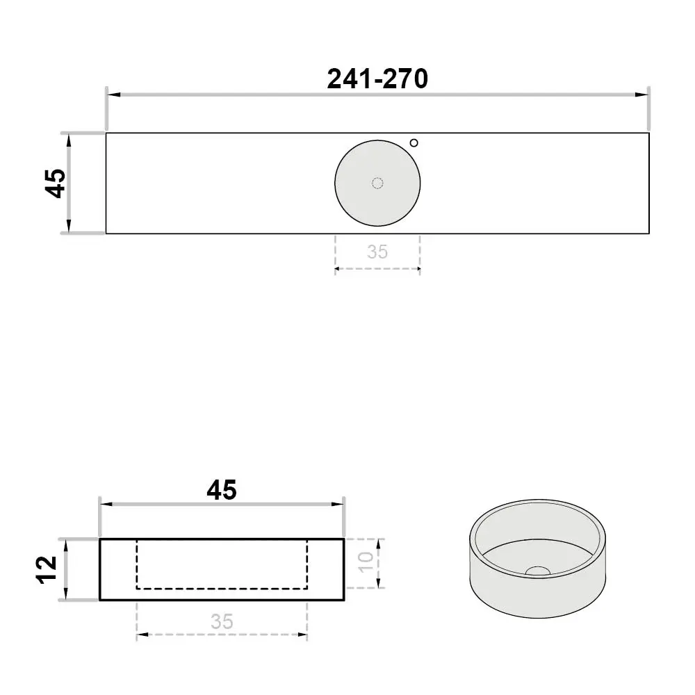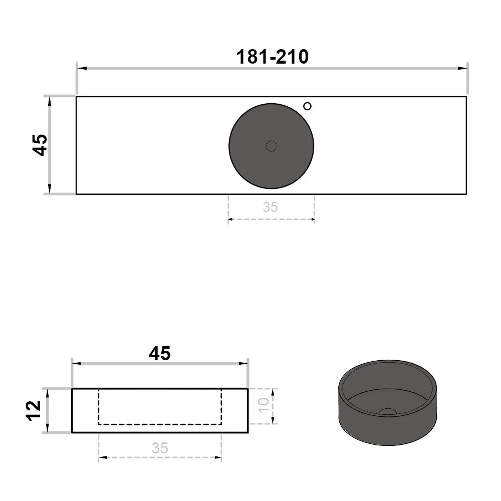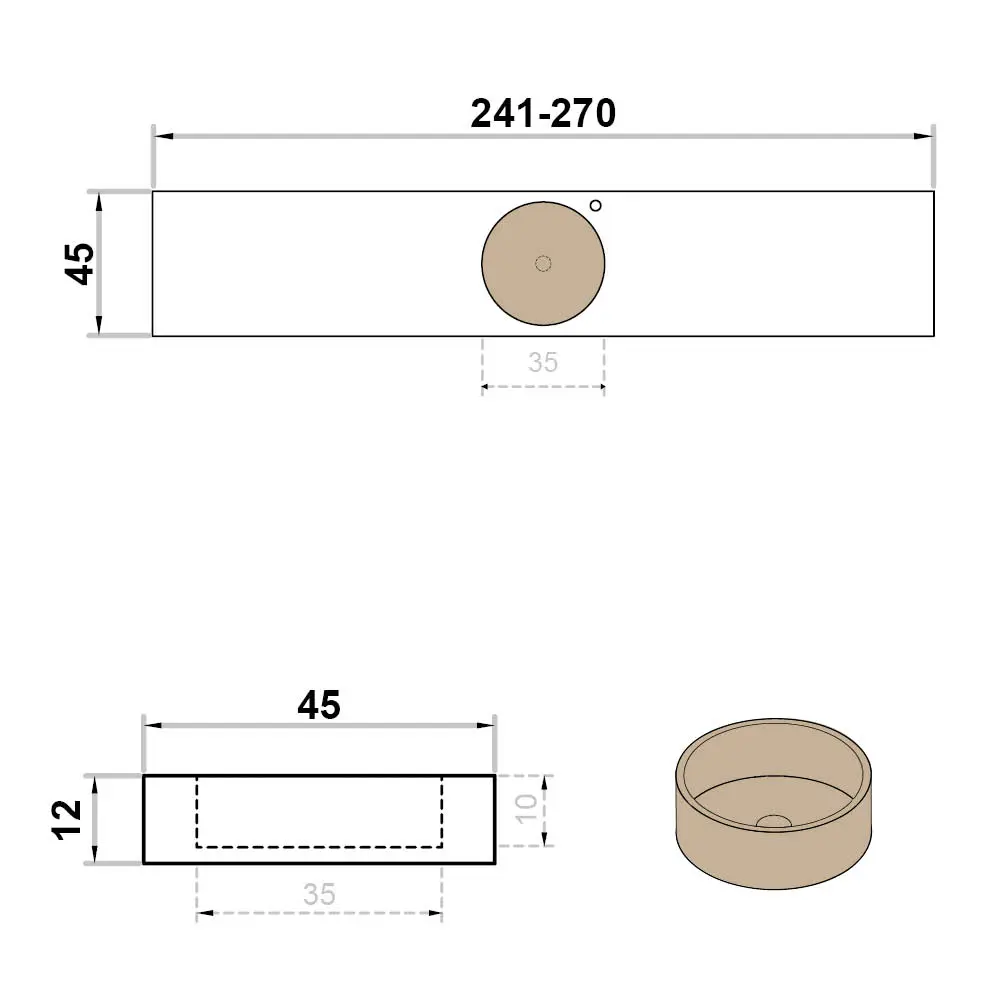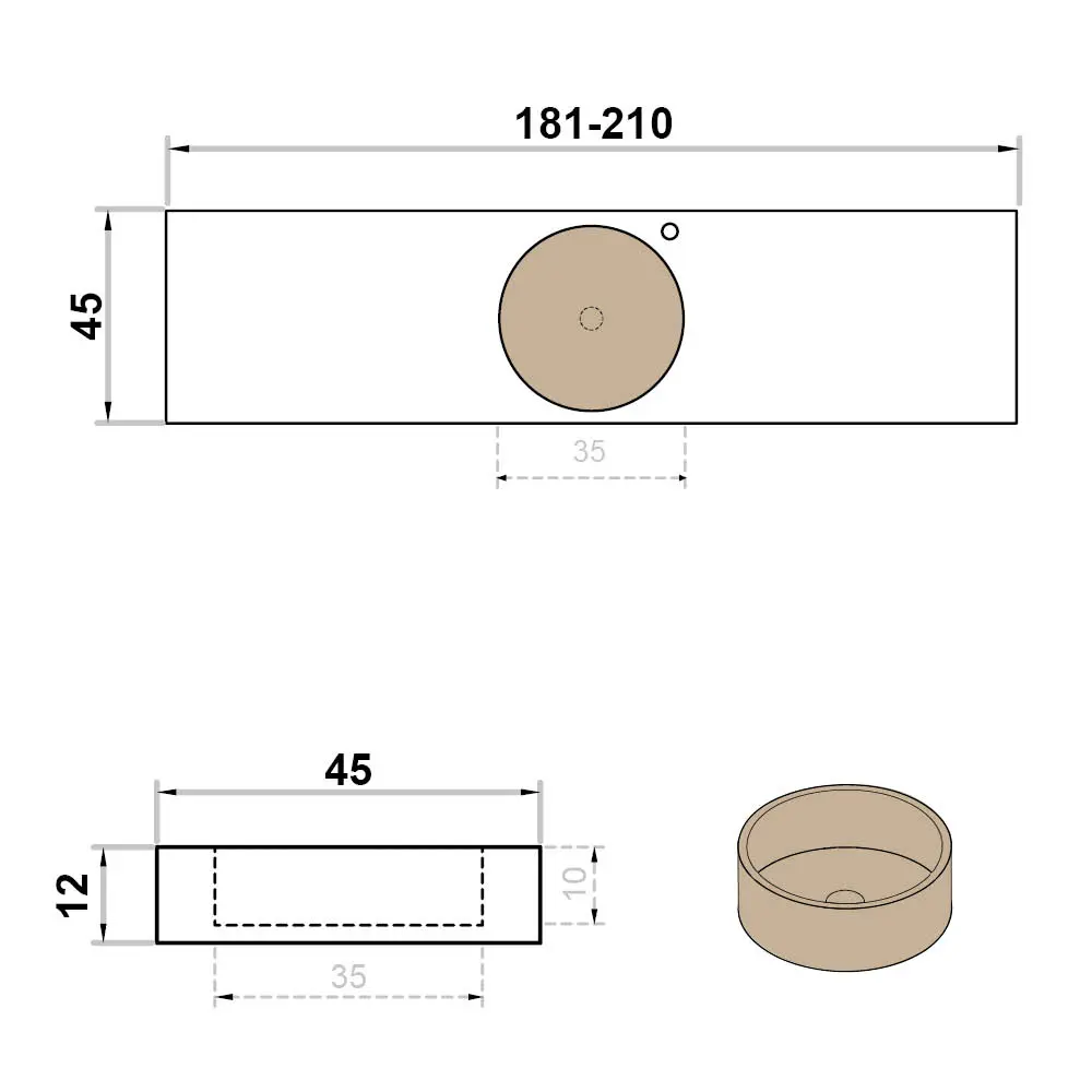 Wastafel op maat enkel met kraangat rond