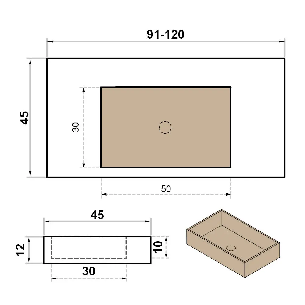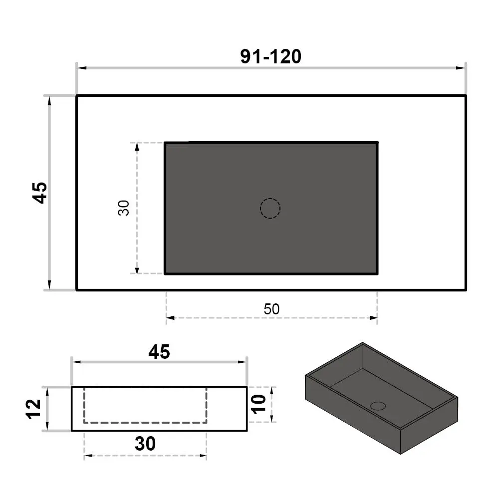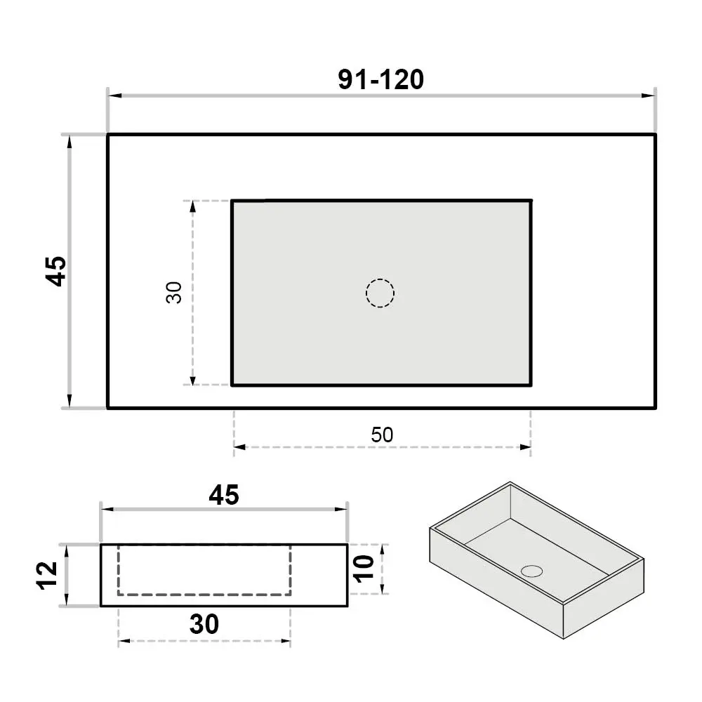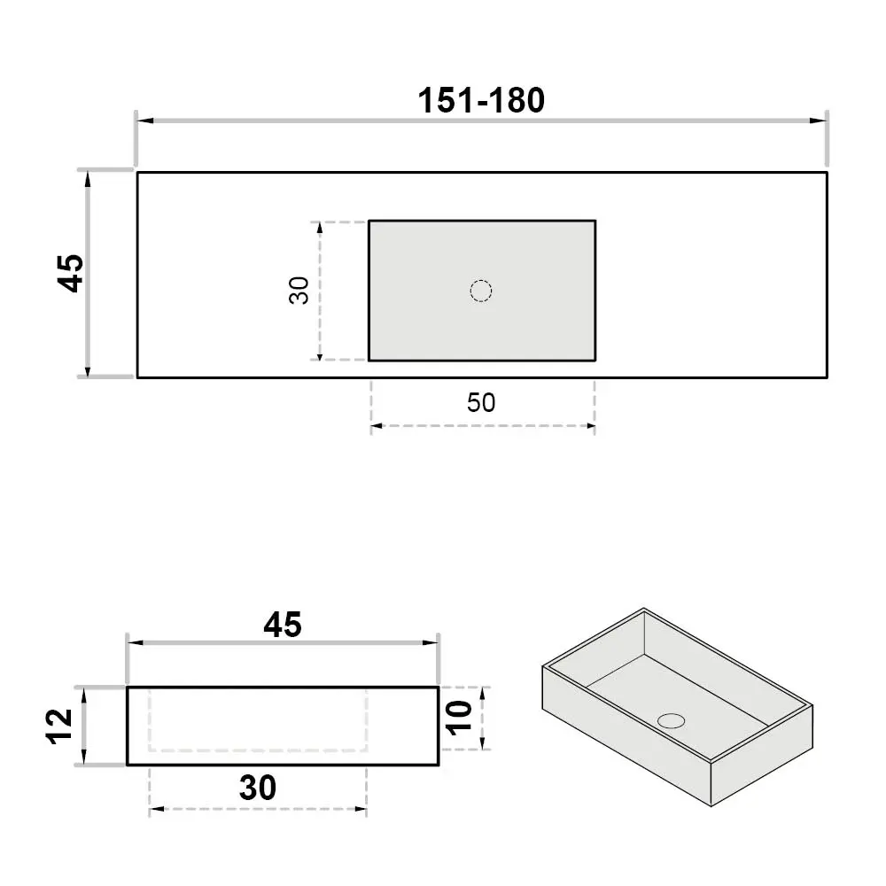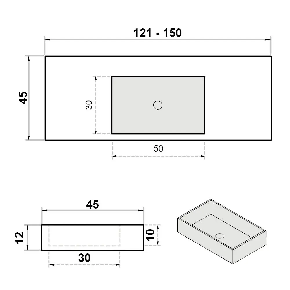 Wastafel op maat enkel zonder kraangat - centraal