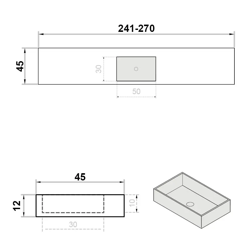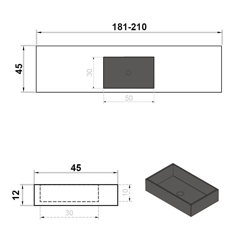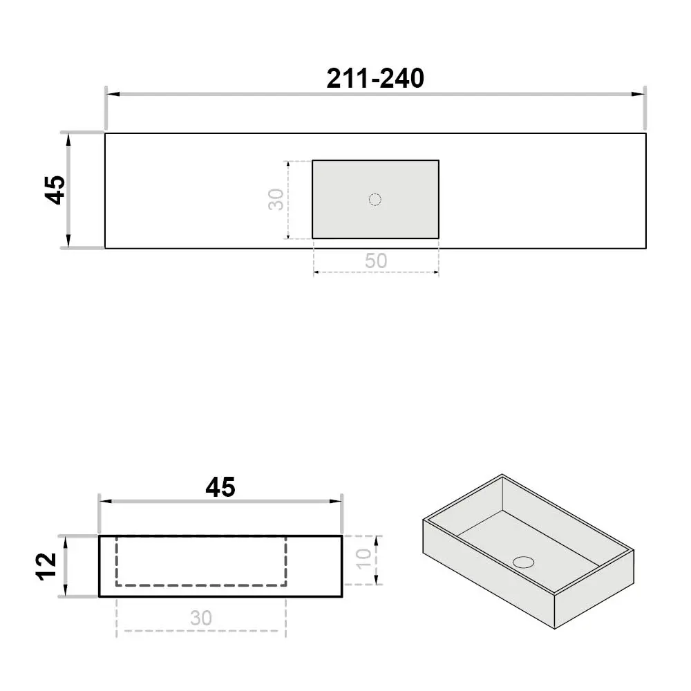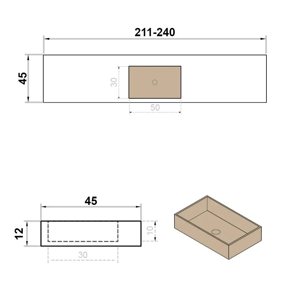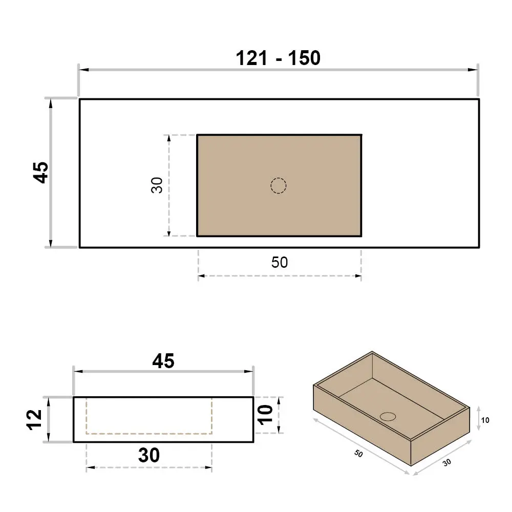 Wastafel op maat enkel zonder kraangat - centraal
