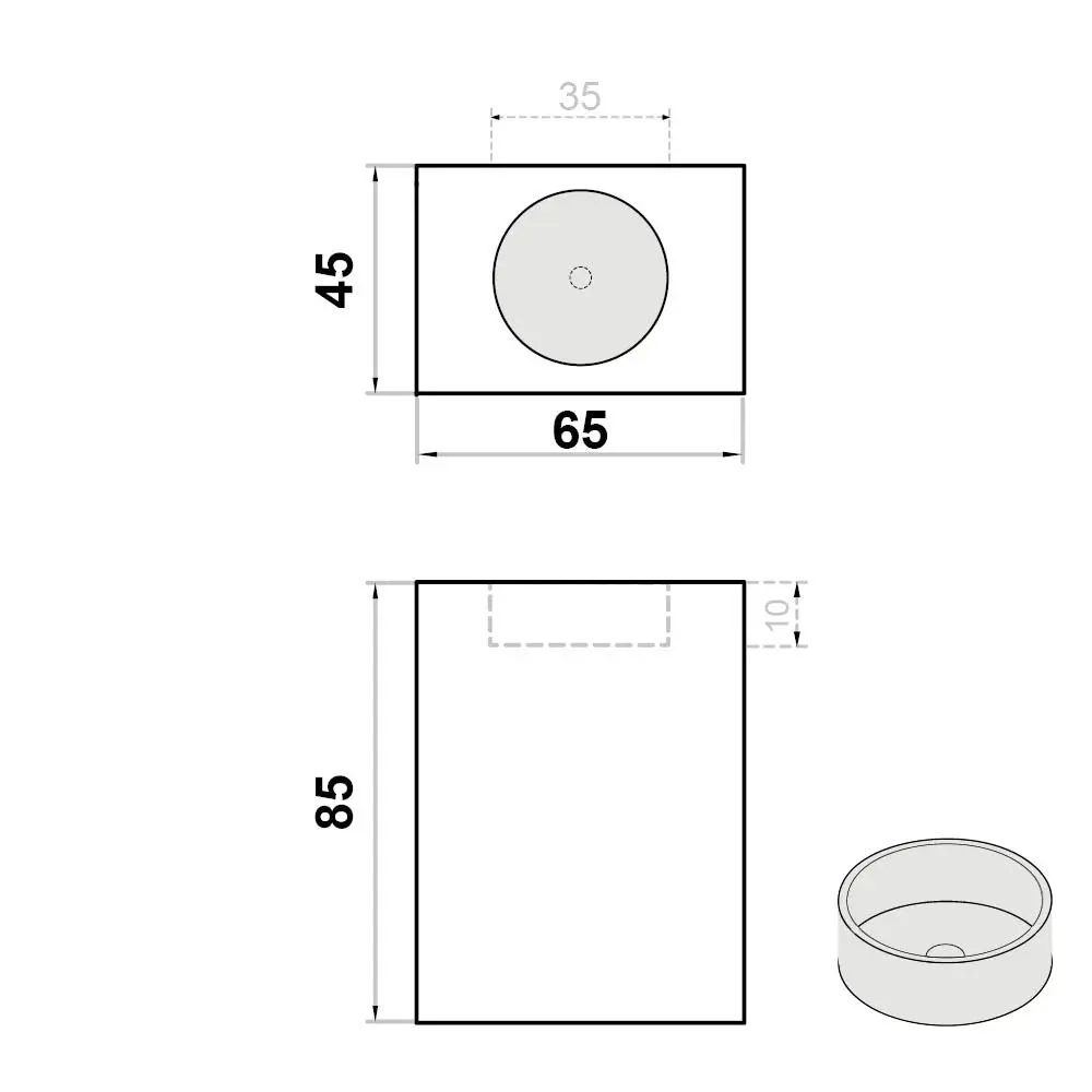 Kies de kleur van de inbouw lavabo: grey, taupe of white.